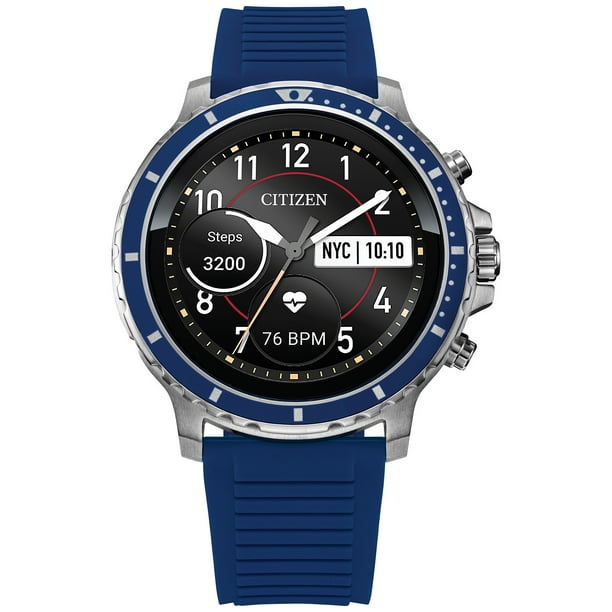 Citizen Cz Smart Hr Heart Rate Smartwatch 46mm Blue Silicon Stainless Steel Watch Powered By Google Wear Os Walmart Com